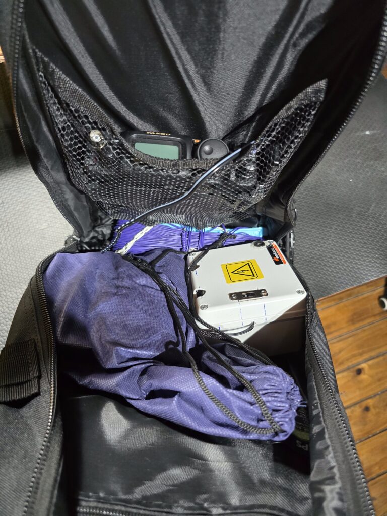 Este sistema con esta configuración me permite transportar y desplegar una estación QRP muy fácilmente y en cuestión de minutos, con una autonomía más que suficiente para varias horas de uso al aire libre.