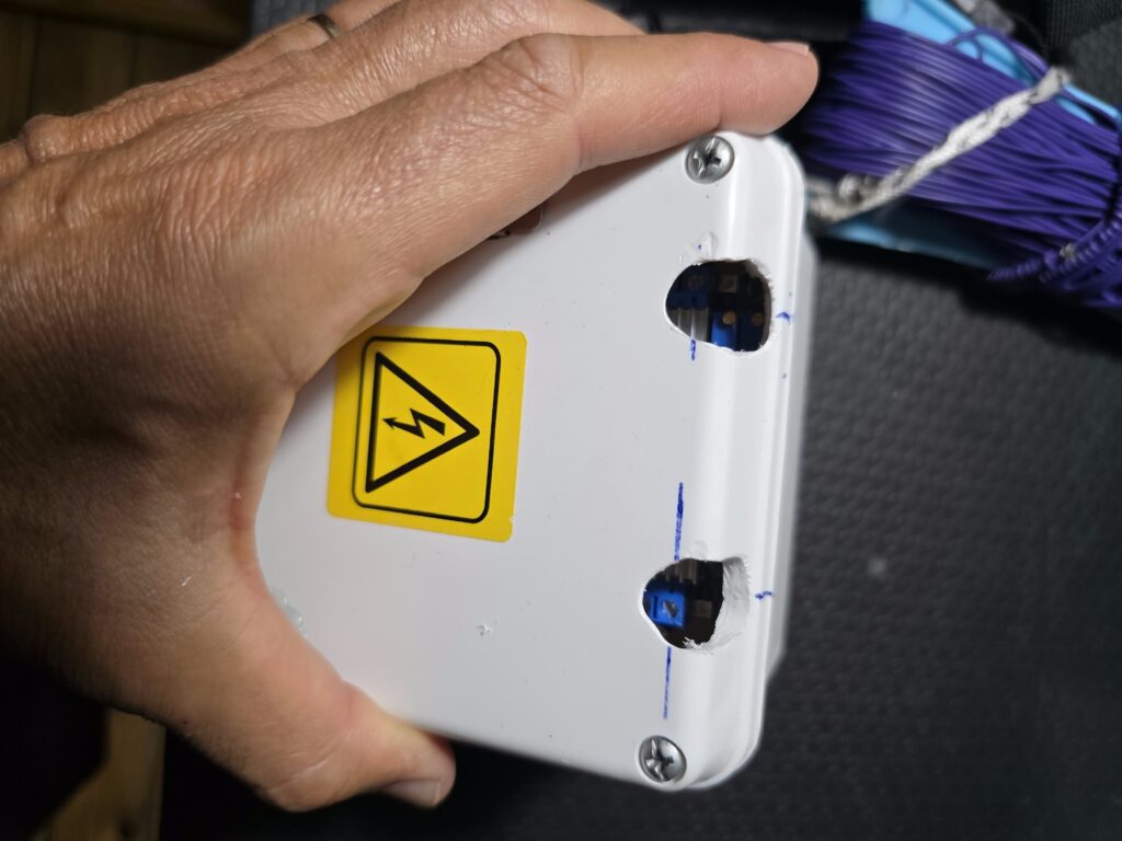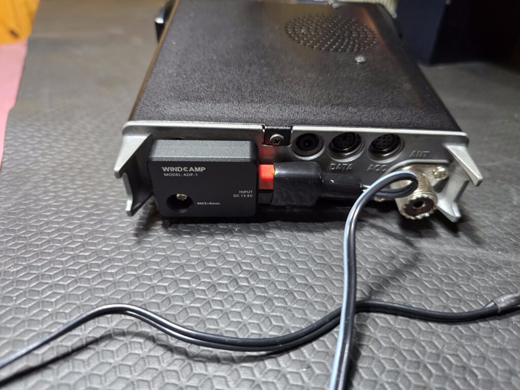 Para la alimentación utilicé el pack de baterías de litio, pero como entrega una tensión nominal bastante más baja de los 13.8 V ideales para el equipo (además el 818 recorta mucho su desde ya escasa potencia cuando se alimenta con baja tensión) le agregué un módulo step up que eleva la tensión a 13.8 V regulados. Este módulo puede activarse o desactivarse mediante un switch. Módulo y baterías están contenidos en una caja estanca tipo eléctrica de paso.