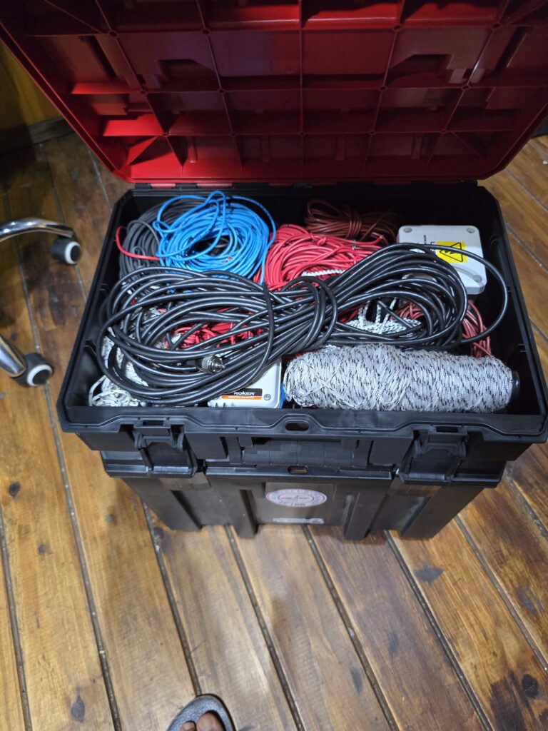 En una de las cajas más chicas dispongo todo el cableado adicional, antenas dipolo, más accesorios varios.