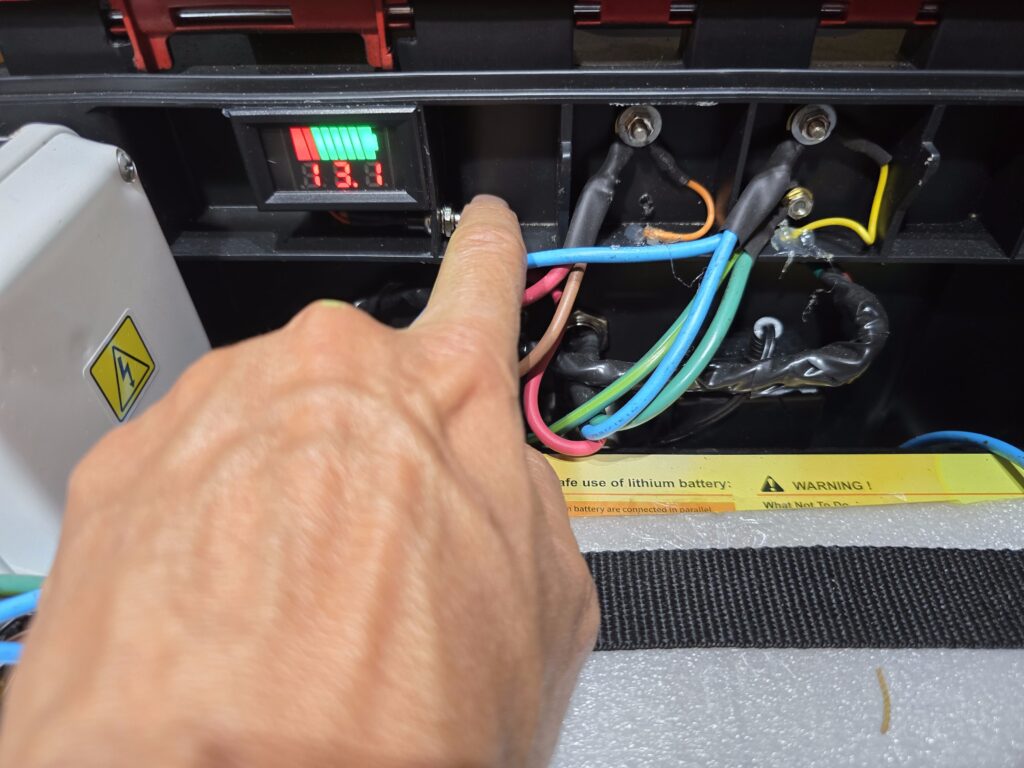 La fuente o el cargador pueden ser activados mediante sus correspondientes interruptores. Le agregué un sistema de relés para evitar que se crucen las alimentaciones cuando se alimenta la batería con el cargador o se conecta la fuente. De esta forma se protege tanto el equipo como la batería. Ejemplo: si se enciende el cargador se corta la alimentación de batería al equipo, pero se puede encender la fuente para utilizar el mismo mientra la batería está en carga. Por otra parte si se está utilizando la batería y se enciende la fuente, se corta la línea de batería y la línea de fuente se conmuta directamente al equipo. También se instaló un voltímetro para control de la tensión entregada al equipo por la batería y/o la fuente.